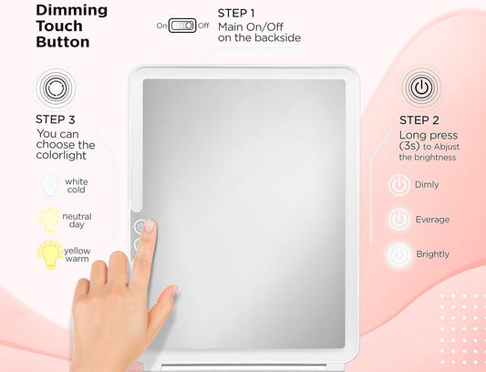 Makeup Mirror, Vanity Mirror, LED Vanity Mirror, 3 Color Light Portable Mirror, Travel Vanity Mirror, Vanity Makeup Mirror, Travel Rechargeable Mirror