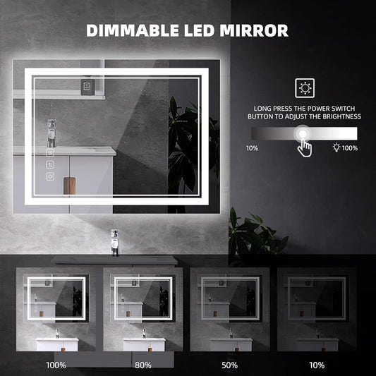 LED Mirror for Bathroom,24X32 Inch LED Bathroom Vanity Mirror,Adjustable Color Temperature Makeup Mirror,Touch Button Adjustable White/Warm/Natural Lights,Horizontal/Vertical